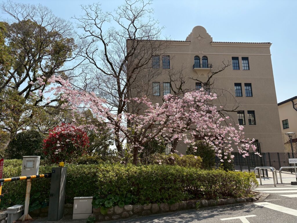 今年も4月の頭に、S59卒津田さんから広弦会寄贈のシダレザクラの開花情報が届き、4月12日(土)には満開のご報告をいただきました。